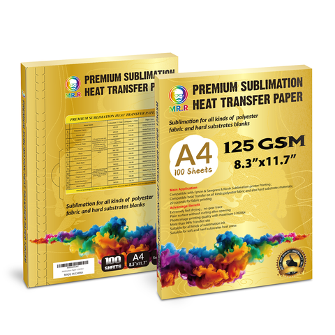 Papel de transferencia de calor por sublimación M R.R Premium 125gsm A4 100 hojas por paquete